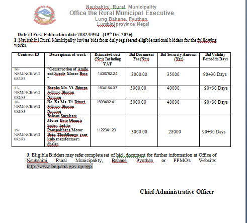 सार्वजनिक खरिद/बोलपत्र सूचना