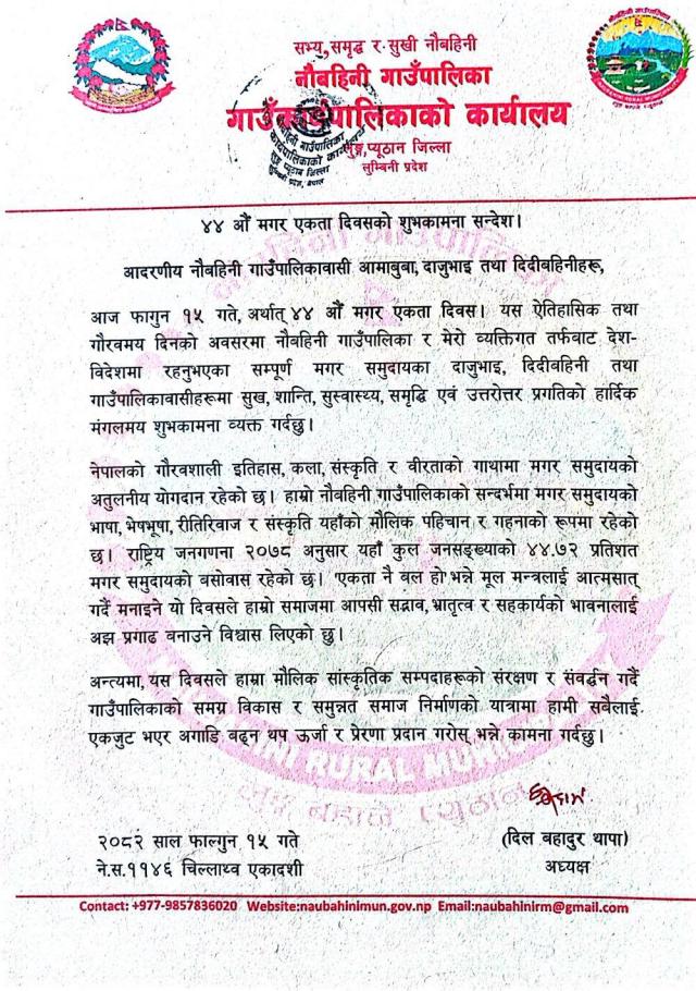 » ४४ औ मगर एकता दिवशको शुभकामना