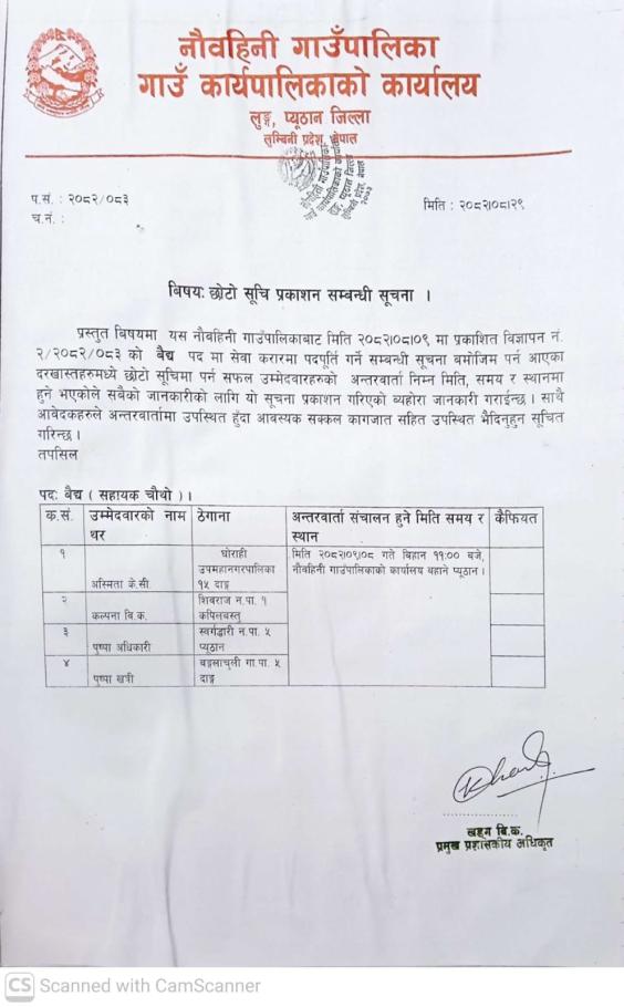 छोटो सूचि प्रकाशन सम्बन्धी सूचना