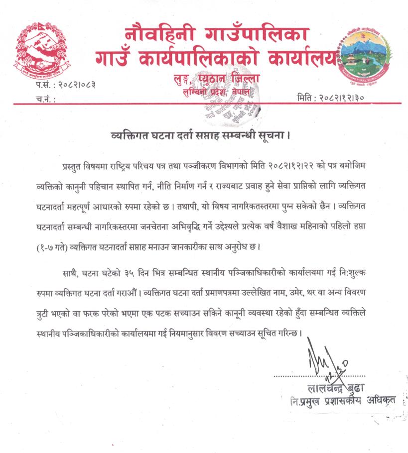 व्यत्तिगत घटना दर्ता सप्ताह सम्बन्धमा