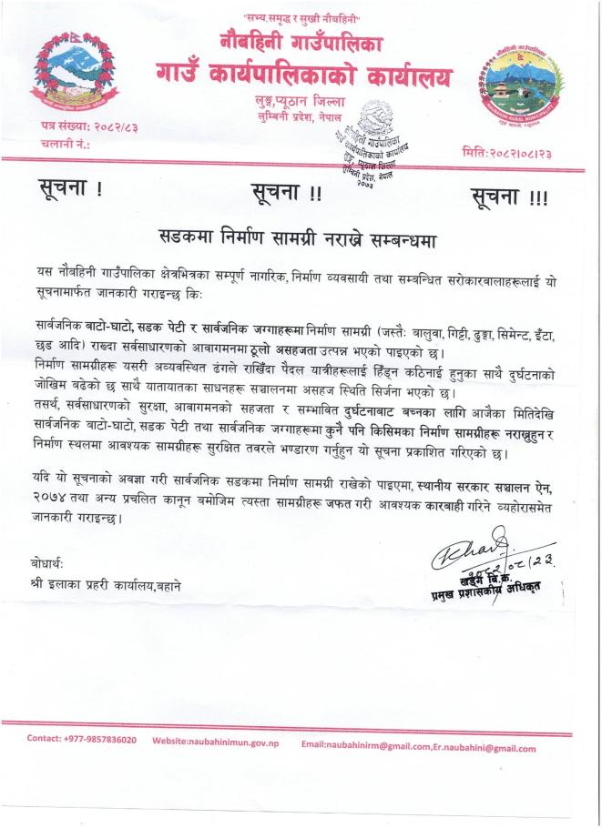 सडकमा निर्माण सामाग्री नराख्ने सम्बन्धमा